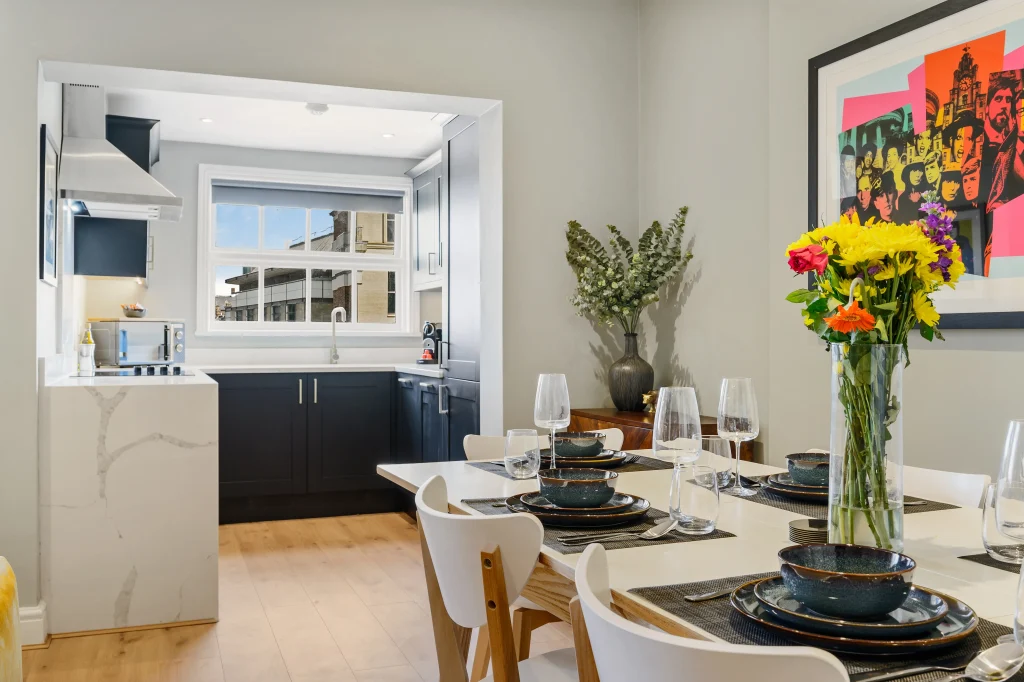 Located across the Liverpool Cathedral, our Upper Duke Street apartments embody original Georgian architecture styles and enjoy Grade II listed status. The apartment can host up to 12 guests, making them perfect for group and family travellers.